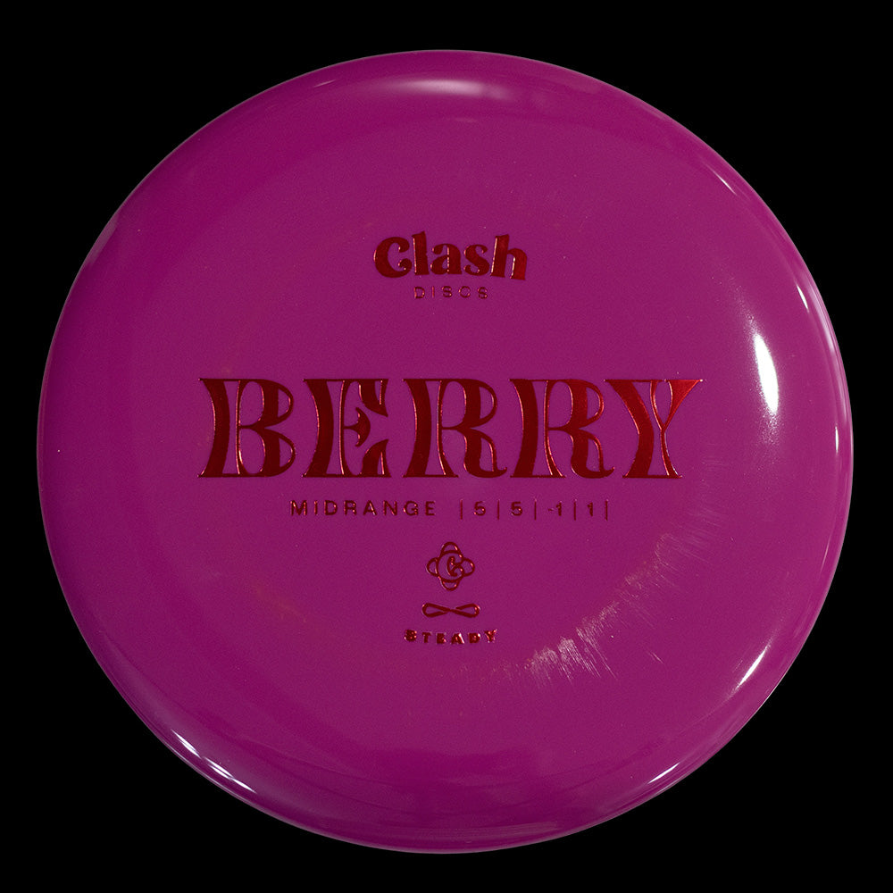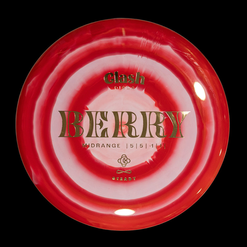 The Berry is a straight flying, all-purpose, midrange that holds a line. This disc provides a comfortable and controllable grip. Thrown flat, the Berry will exhibit a nice and glidey flight with a little turn and an equal amount of fade, giving you a very straight-flying disc. The disc is designed to be your go-to disc, capable of holding any line that you need it to hold.
