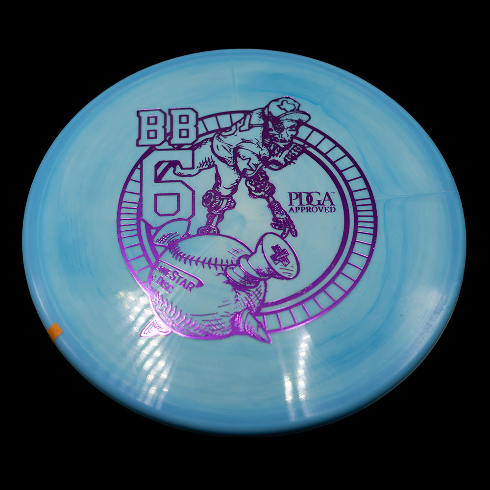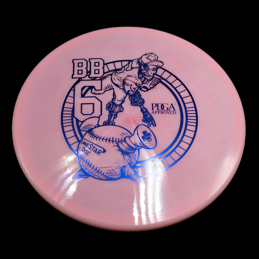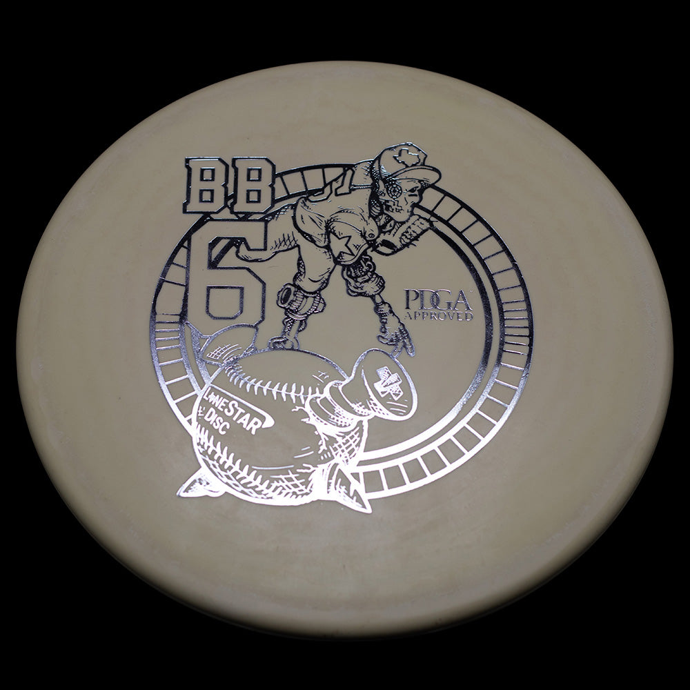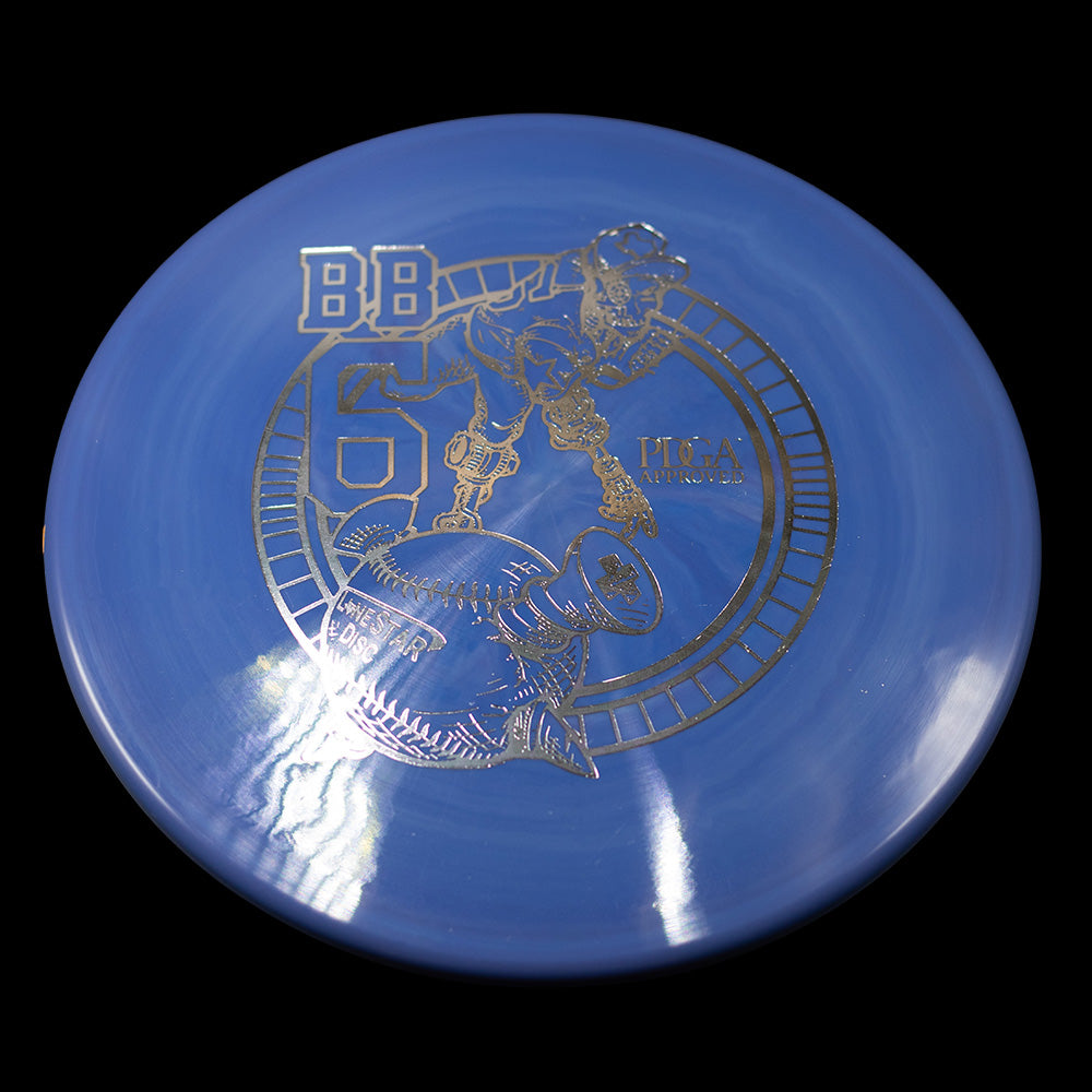 The BB6 is Lone Star Disc's flagship understable mid-range. When thrown at mid-to-high speeds, the BB6 has a gradual and predictable turn. Making it the perfect disc for long turnover shots, taking advantage of tailwinds, or riding gentle lines through the woods.