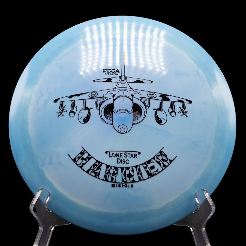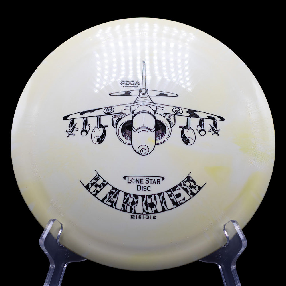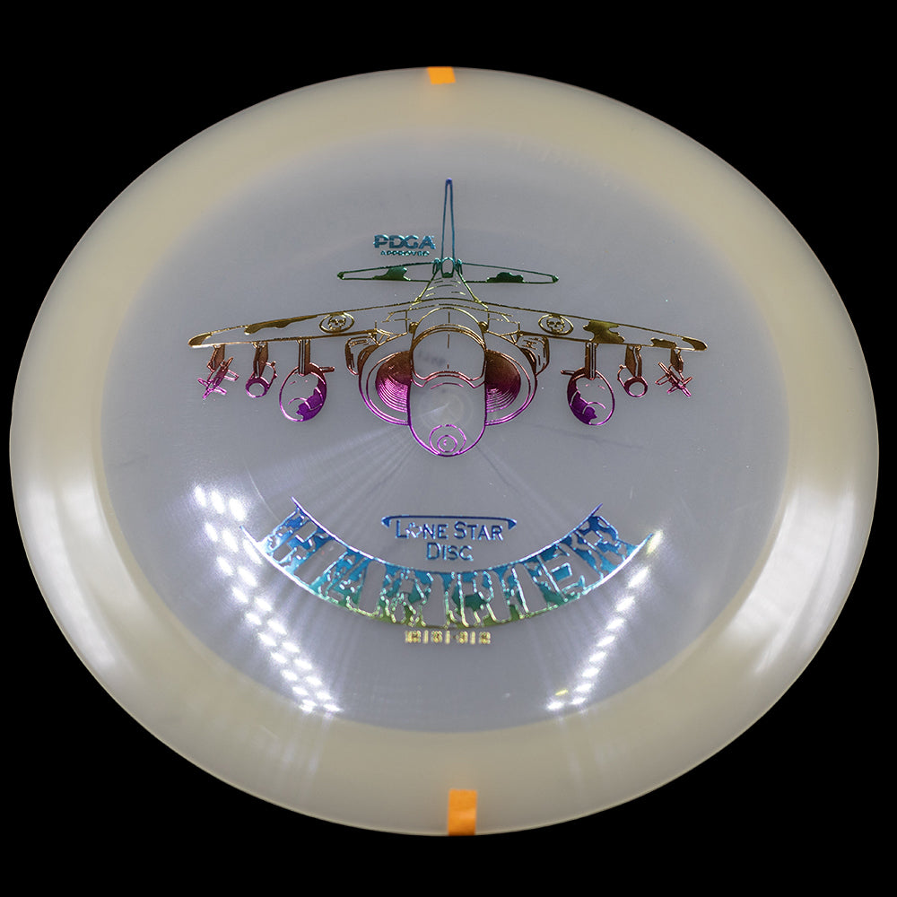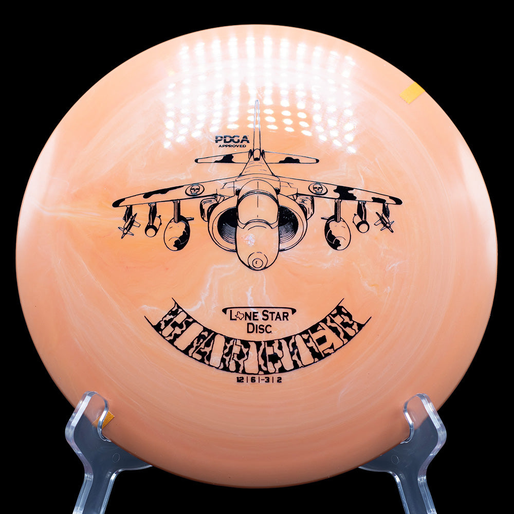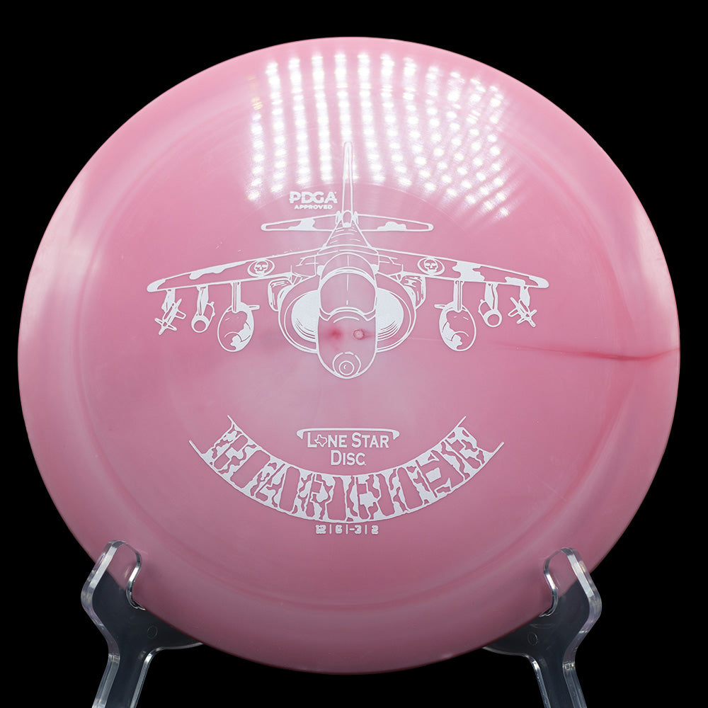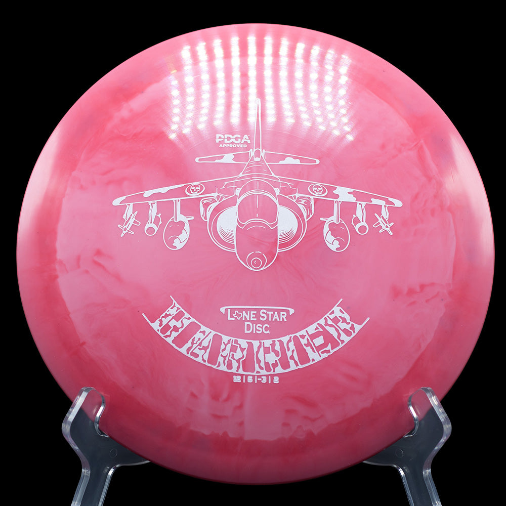 The Harrier aims to fill a slot fundamental to every player's bag: A max-distance understable driver. Advanced players will find the Harrier useful for tailwind crushes, long hyzer-flips, and huge rollers, while beginners and slower arms can utilize it to achieve a full flight. The Harrier has a place in every player's bag.