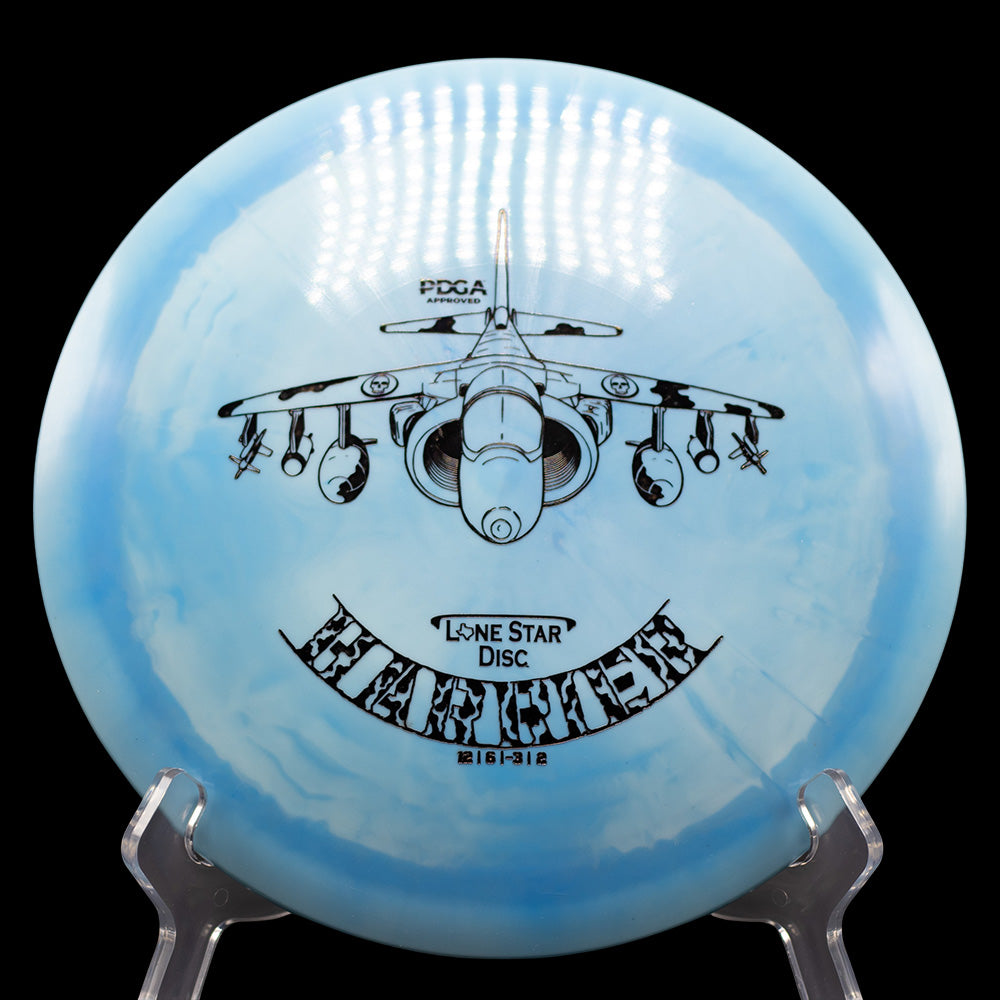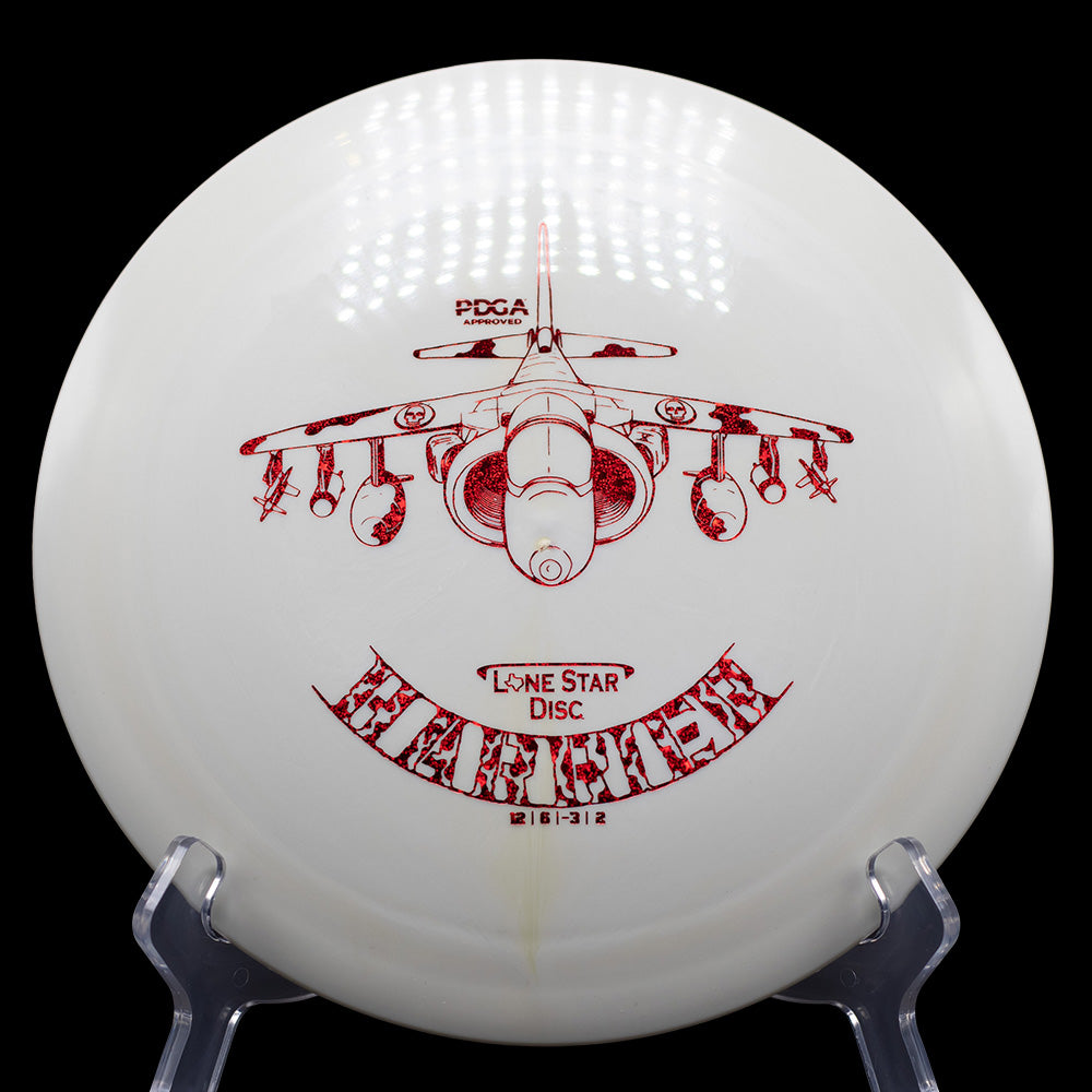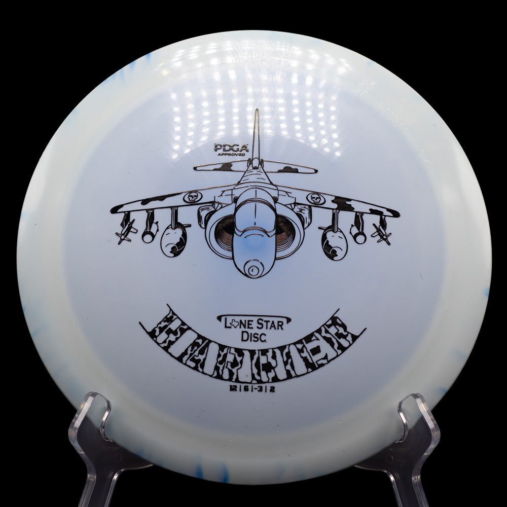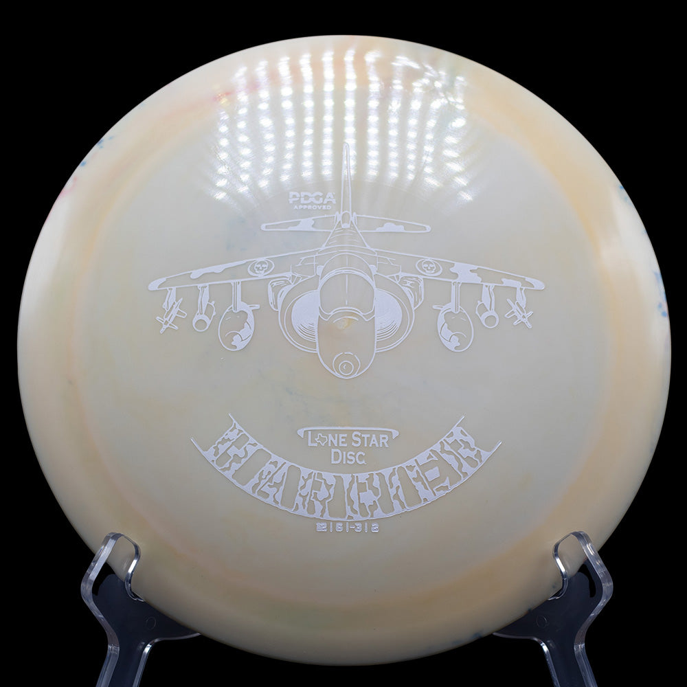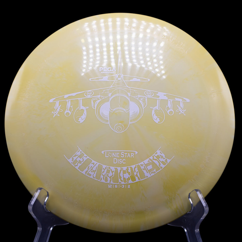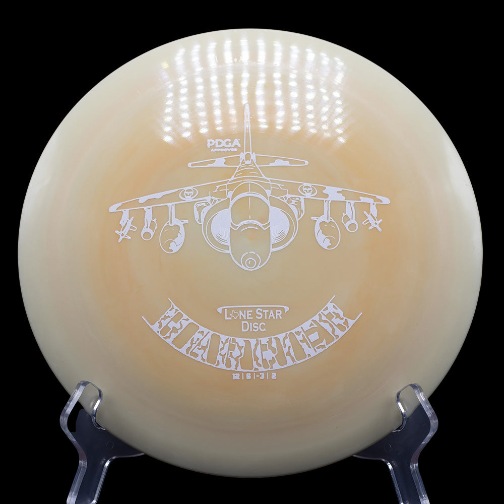 The Harrier aims to fill a slot fundamental to every player's bag: A max-distance understable driver. Advanced players will find the Harrier useful for tailwind crushes, long hyzer-flips, and huge rollers, while beginners and slower arms can utilize it to achieve a full flight. The Harrier has a place in every player's bag.