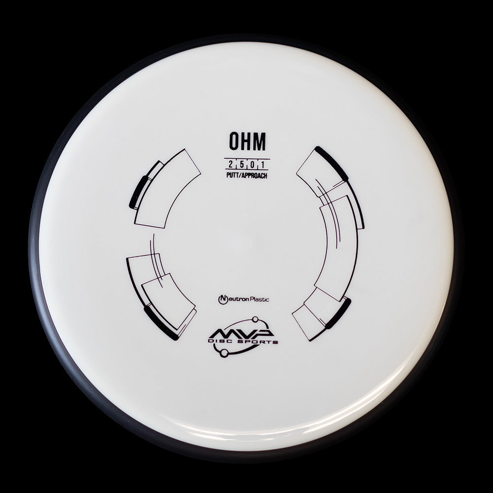 Laser straight drives and confident putts are the best ways to describe the brand new Ohm from MVP. Debuting in Neutron plastic, the Ohm is inspired by the Streamline fan-favorite Pilot, but with enhanced GYRO® effect. The results are incredible! The tried and true shape provides both a reliable grip and loads of glide for some truly impressive drives and putts. The Ohm is sure to find a place in every disc golfer’s bag and, thanks to the durability of Neutron plastic, stay there.