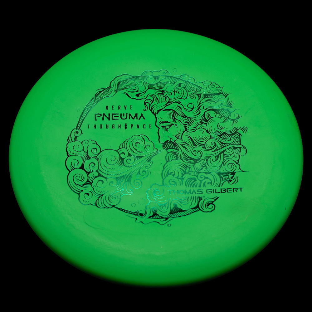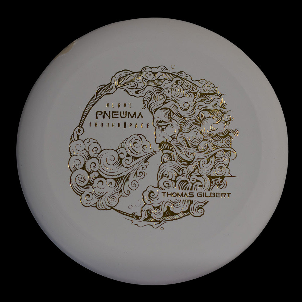 The Pneuma is TSA's new beaded putter crafted through a collaborative effort between Thought Space Athletics and Thomas Gilbert. With flight numbers 2-3-0-0, the Pneuma boasts exceptional control and accuracy, making it the ideal choice for beginners and seasoned players. Its sleek design and comfortable grip ensure a smooth release, allowing for precise throws that effortlessly navigate the course. Prepare to elevate your game with the Pneuma!